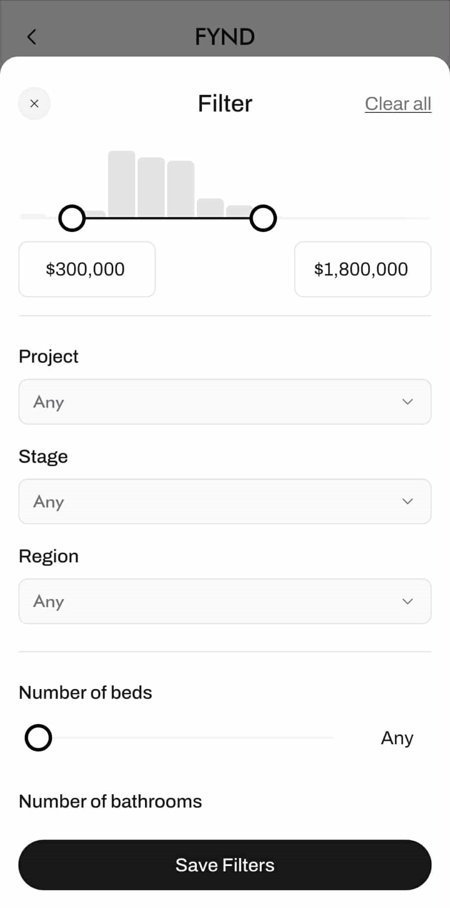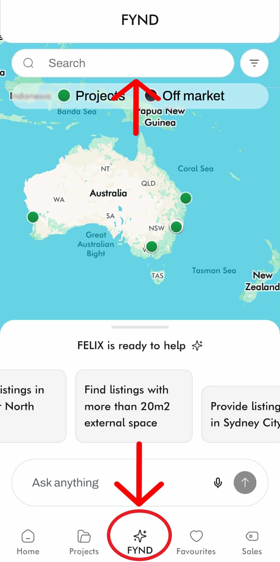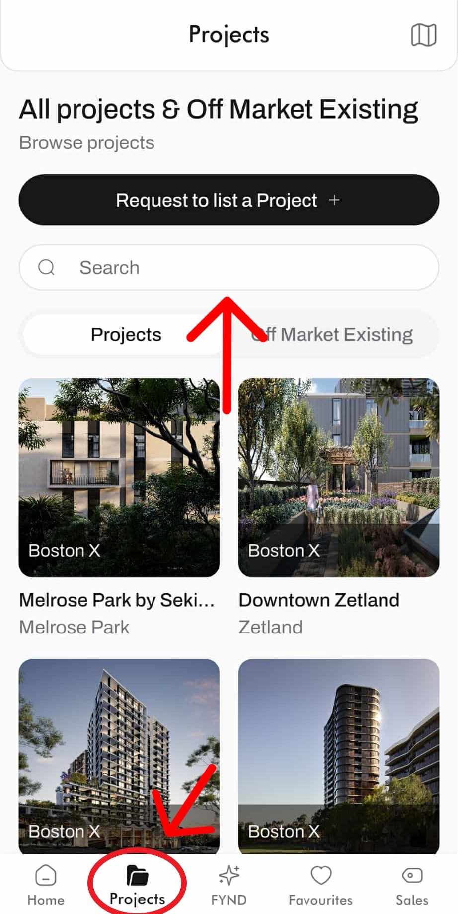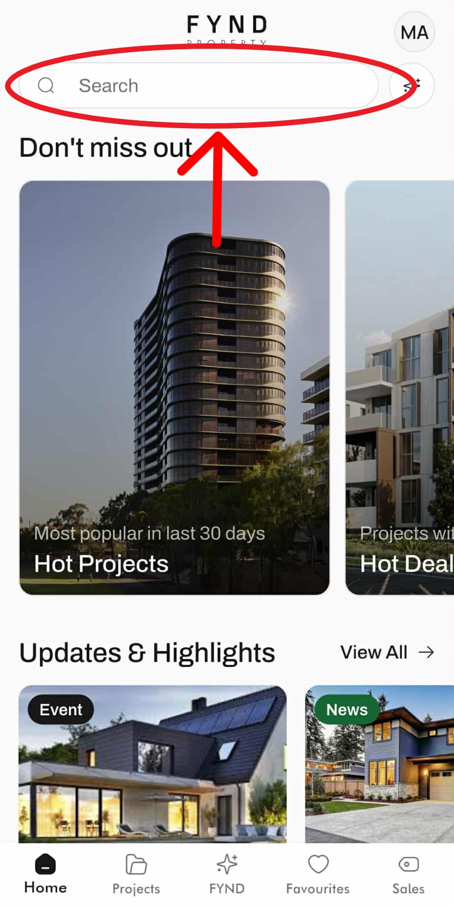 Third option is the search on the FYND Search screen - no type ahead but works similar to Project screen search to match name, we also have AI-powered search makes it easier to find properties while supporting multiple languages.