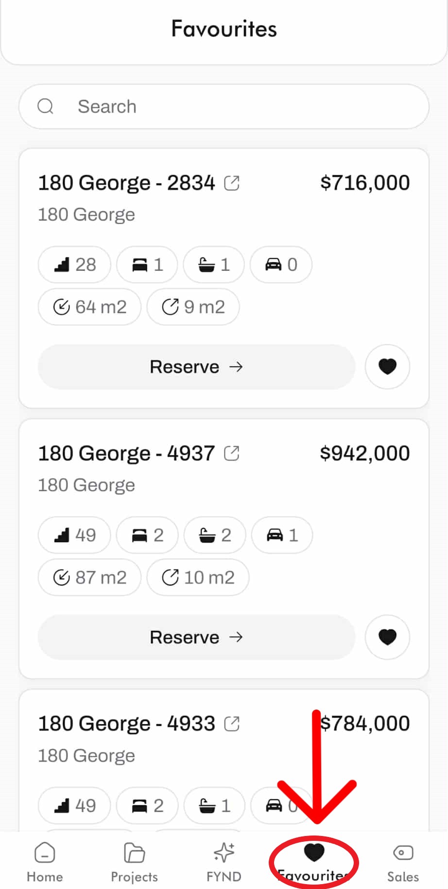 To see you favorite list. Click on Favourites on the features below