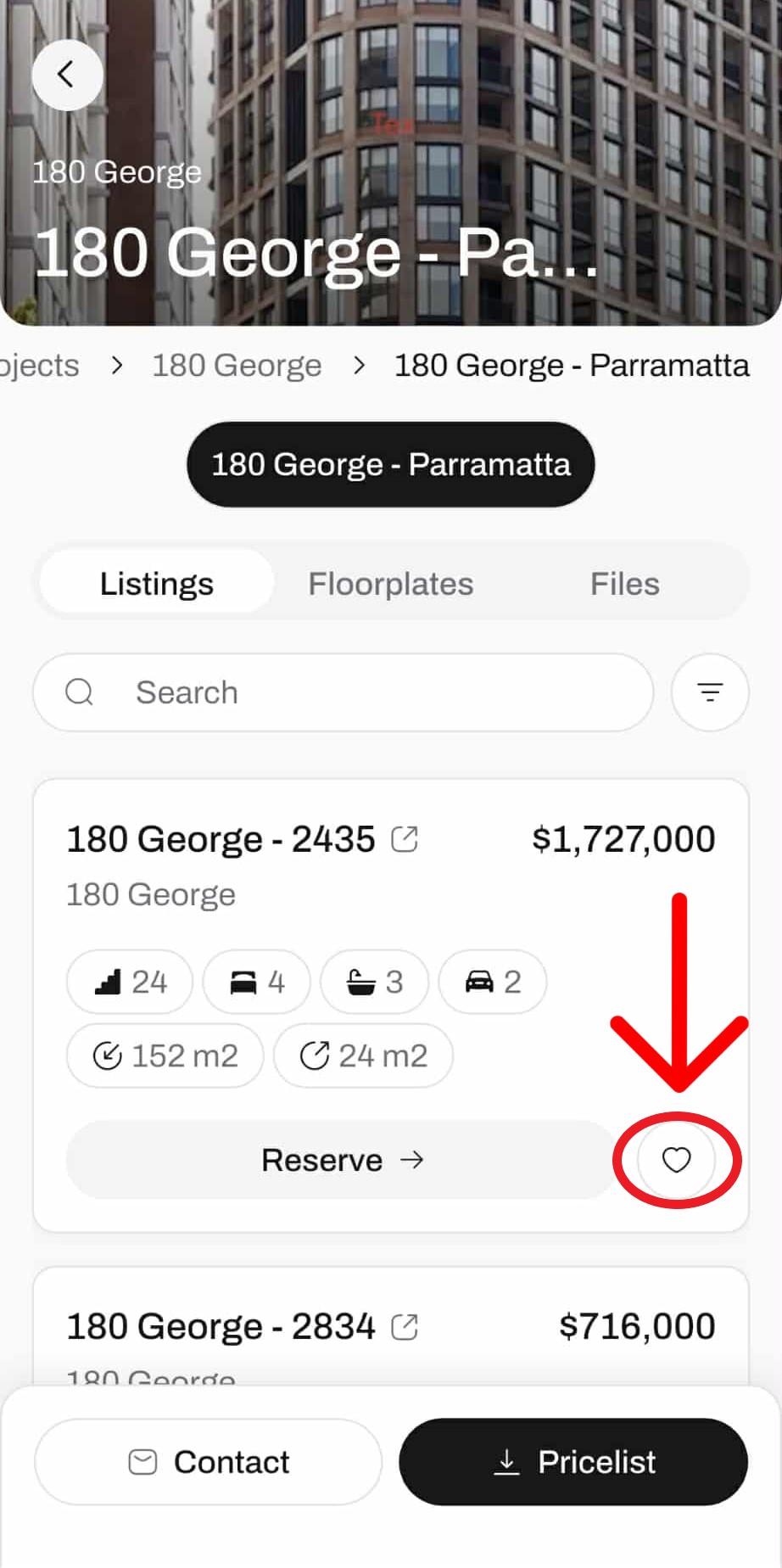 Yes. On your selected listing tap the heart icon on the list.