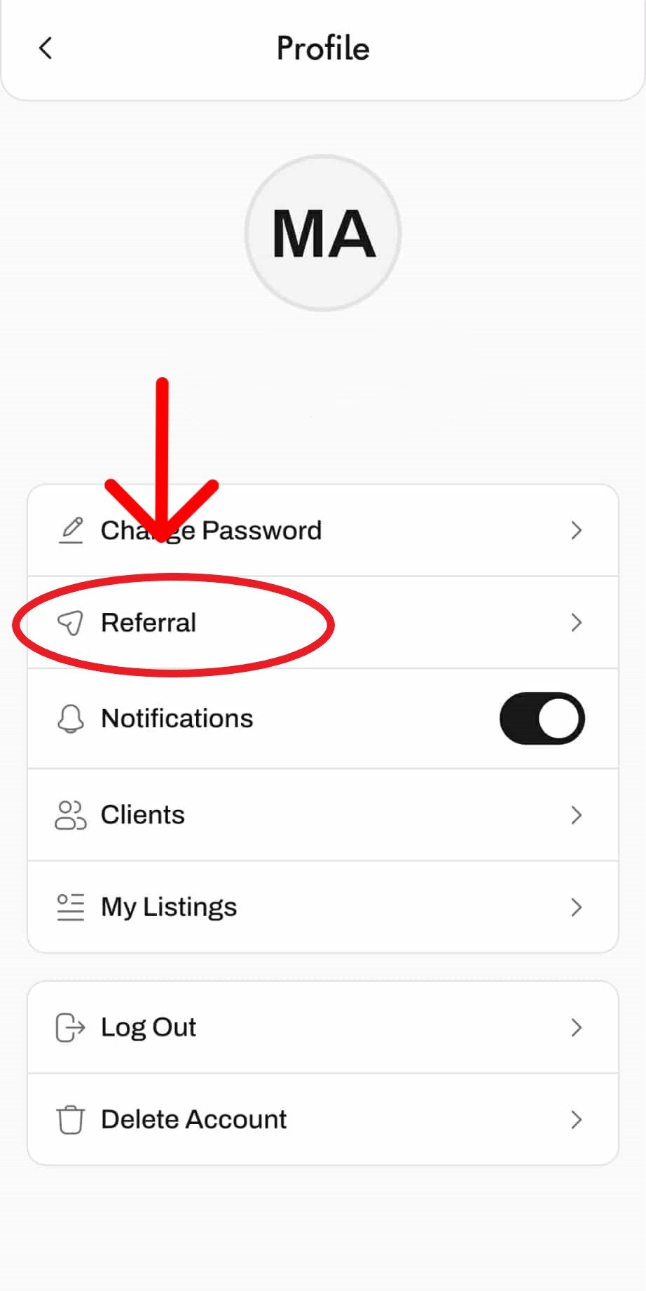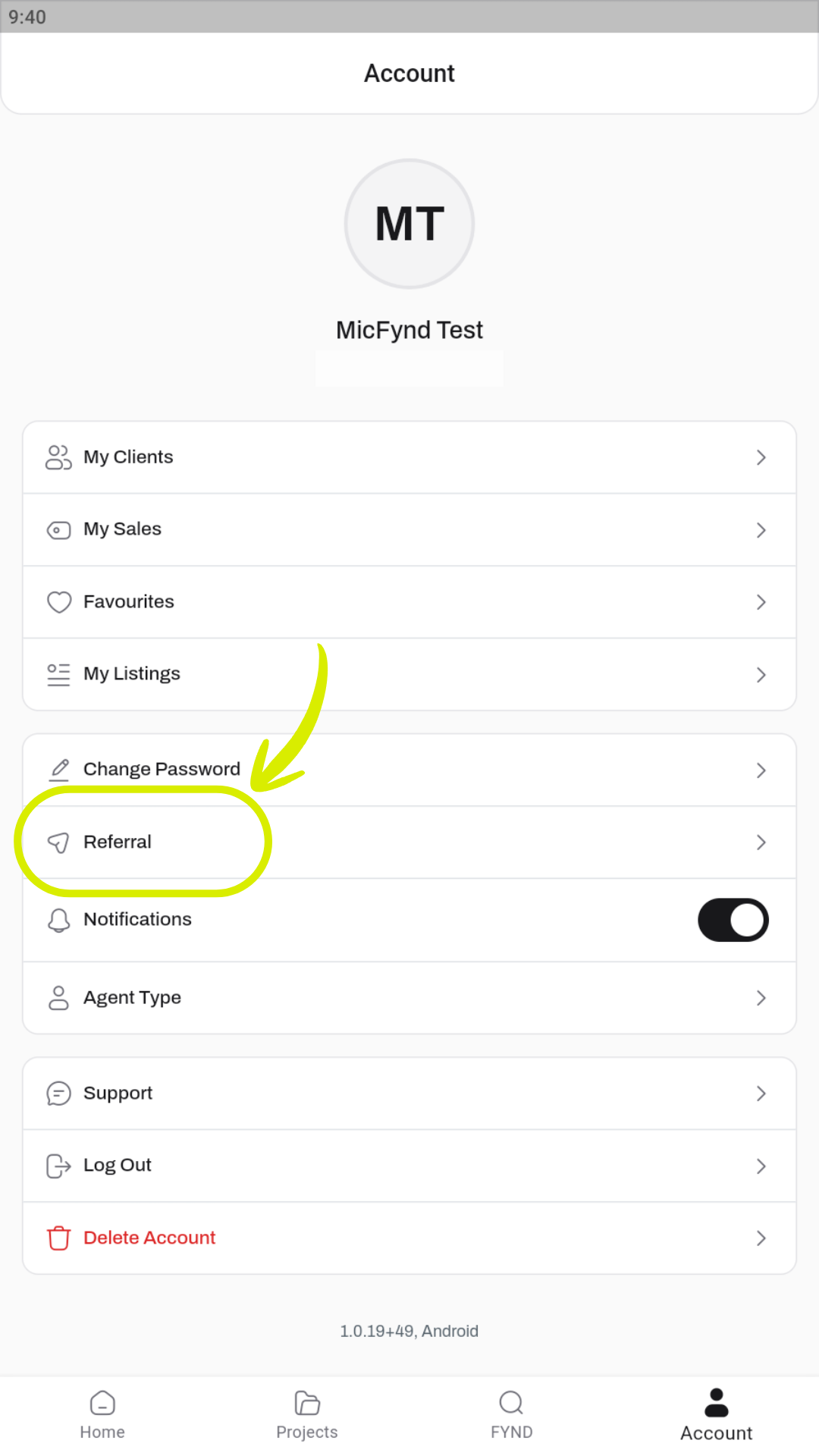 You can share your referral by going to the Referral Program section in the FYND Property app.